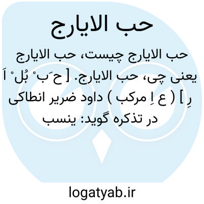 حب الایارج. [ ح َب ْ بُل ْ اَ رِ ] ( ع اِ مرکب ) داود ضریر انطاکی در تذکره گوید: ینسب الی ابن ماسوا ( شاید: ماسویه ) و لم یثبت. ینفع من امراض الدماغ الباردة خصوصاً عن البلغم و یحد البصر و ینقی المعدة. و صنعته: ایارج فیقرا، سته. اهلیلج اصفر، خمسة. تربد، اربعة. انیسون، ملح هندی، من کل اثنان و نصف. غاریقون، اثنان. شحم حنظل، واحد.و یقوی فی الصفراویین بسقمونیا. قیل ان قوّته تبقی الی سنتین و حدّ الشربة منه الی مثقال. رجوع به حب الایارج در تحفه حکیم مؤمن باب دوم از قسم دوم شود.