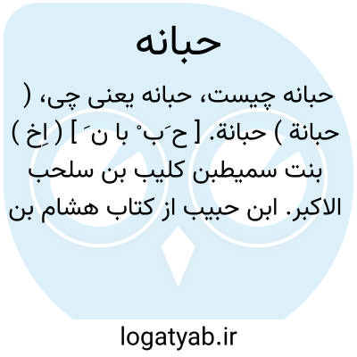 ( حبانة ) حبانة. [ ح َب ْ با ن َ ] ( اِخ ) بنت سمیطبن کلیب بن سلحب الاکبر. ابن حبیب از کتاب هشام بن کلبی درباب نسب حضرموت از او نام برده. رجوع به سمعانی ص 152 ب شود.