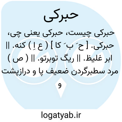 حبرکی. [ ح َ ب َ کا ] ( ع اِ ) کنه. || ابر غلیظ. || ریگ توبرتو. || ( ص ) مرد سطبرگردن ضعیف پا و درازپشت و کوتاه پا. ( منتهی الارب ). مردم درازپشت کوتاه پای. ج، حبرکیات. ( مهذب الاسماء ). || قومی حبرکی؛ نیست شدگان و هالک. ( منتهی الارب ).