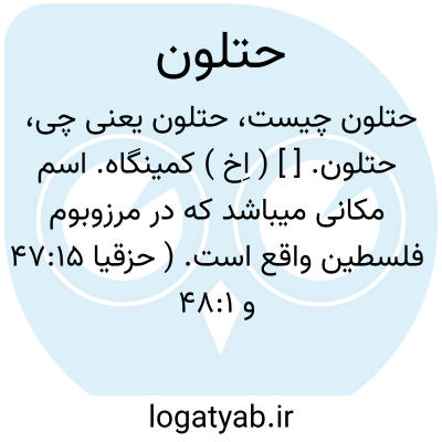 حتلون. [ ] ( اِخ ) کمینگاه. اسم مکانی میباشد که در مرزوبوم فلسطین واقع است. ( حزقیا 47:15 و 48:1 ). و رأی معتبر آن است که راه حتلون همان راه شمالی لبنان میباشد که با مدخل حمات موافق است. ( سفر اعداد 34:8 ). رجوع به حمات شود. ( قاموس مقدس ).