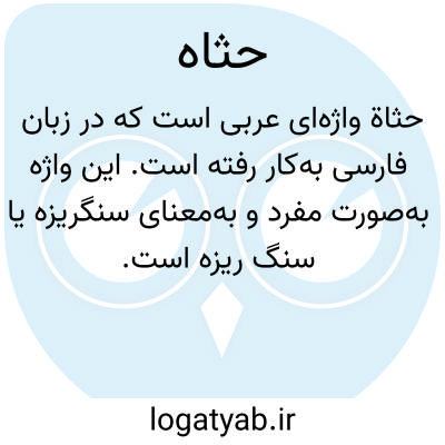 حَثاة واژه‌ای عربی است که در زبان فارسی به‌کار رفته است. این واژه به‌صورت مفرد و به‌معنای سنگریزه یا سنگ ریزه است و در متون کهن و لغتنامه‌های معتبر عربی همچون منتهی الارب به این معنا ثبت شده است. در فرهنگ‌های لغت، حَثاة به‌عنوان اسمی مفرد معرفی شده و جمع آن حَثی یا حَثا ذکر گردیده است. این واژه معمولاً برای اشاره به سنگ‌های بسیار ریز یا خاک‌ریز به‌کار می‌رود و در متون ادبی و کهن، گاه در توصیف زمین‌های سنگلاخ یا صحنه‌های طبیعی کاربرد داشته است. با توجه به ریشه عربی این واژه، استفاده از آن در متون فارسی امروزی کمتر رایج است و بیشتر در متون تخصصی ادبیات عربی یا پژوهش‌های تاریخی و زبان‌شناسی دیده می‌شود. با این حال، شناخت این قبیل واژه‌ها برای درک بهتر میراث زبانی و ادبیات کلاسیک ضروری به‌نظر می‌رسد.