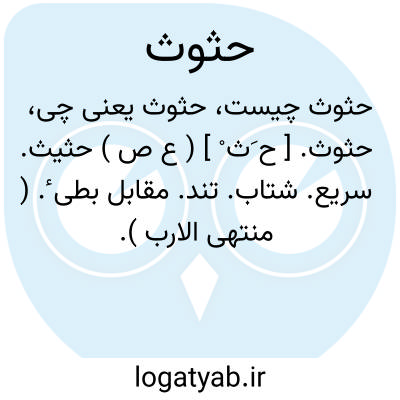 حثوث. [ ح َث ْ ] ( ع ص ) حثیث. سریع. شتاب. تند. مقابل بطی ٔ. ( منتهی الارب ).