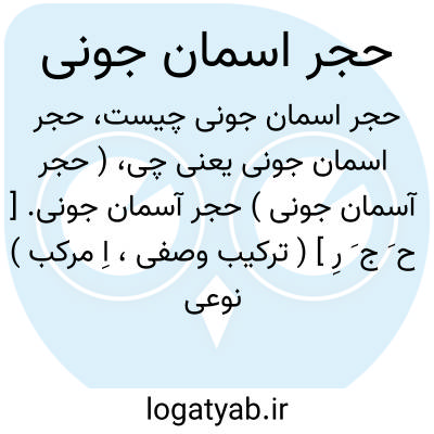 ( حجر آسمان جونی ) حجر آسمان جونی. [ ح َ ج َ رِ ] ( ترکیب وصفی، اِ مرکب ) نوعی سنگ برنگ آسمانی. ( نزهة القلوب حمداﷲ مستوفی ).