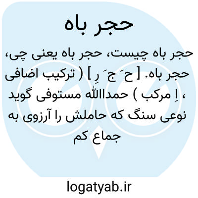 حجر باه. [ ح َ ج َ رِ ] ( ترکیب اضافی، اِ مرکب ) حمداﷲ مستوفی گوید نوعی سنگ که حاملش را آرزوی به جماع کم نشود. ( نزهة القلوب ).