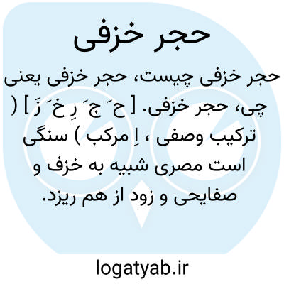 حجر خزفی. [ ح َ ج َ رِ خ َ زَ ] ( ترکیب وصفی، اِ مرکب ) سنگی است مصری شبیه به خزف و صفایحی و زود از هم ریزد. بغایت خشک و گرمی او کمتر و با قوه قابضه و اندک حدت و قایم مقام حجر قیشور در ستردن موی و دودرهم او با شراب قاطع خون حیض و خوردن آن چهار روز بعد از طهر باعث قطع حمل دائمی زنان و ضماد او با عسل جهت ورم پستان و قروح خبیثه و منع زیاده شدن خون مؤثر است. ( تحفه حکیم مؤمن ). صاحب اختیارات بدیعی گوید: سنگی است که در مصر بسیار باشد و مانند خزف بود و زود از هم بشکافد و صفحه ها بر یکدیگر بود و بجای قیسور مستعمل کنند و با شراب بیاشامند. قطع خون حیض بکند و چون با عسل خلط کنند و بر ورم پستان نهند و بر ریشهای پلید طلا کنند ورم پستان ساکن گرداند و ریشها را به اصلاح آورد و بغایت خشک بود. و ابن البیطار در مفردات آورده است: [ قال ] دیسقوریدوس، فی الخامسة،زعم قوم انه موجود کثیراً بمصر و هو حجر شبیه بالخزف سریع التشقق ذوصفائح و قد یستعمل مکان القیشور فی قلع الشعر و اذا خلط منه مقدار درهمین و شرب بالخمر قطع الطمث و ان شربت منه المراءة مقدار درخمی بعد التطهیر من العلة فی کل یوم و فعلت ذلک اربعة ایام لم تعلق و اذا خلط بالعسل و وضع علی الابدان الوارمة و علی القروح الخبیثة سکن ورم الثدی و منع القروح الخبیثة من الانتشار. [ قال ] جالینوس فی التاسعة: قوته قوة تجفف تجفیفاً کثیراً. و هی مرکبة من القبض والحدة.