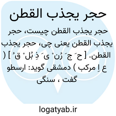 حجر یجذب القطن. [ ح َ ج َ رُن ْ ی َ ذِ بُل ْ ق ُ ] ( ع اِ مرکب ) دمشقی گوید: ارسطو گفت، سنگی است که در سواحل دریا از نمک زار متکون شود، سفیدرنگ است. اگر پنبه بر آن نهند بدان چسبد اگرچه باکتان بافته باشد. ( نخبةالدهر ص 75 ).