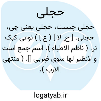 حجلی. [ ح ِ لا ] ( ع اِ ) نوعی کبک نر. ( ناظم الاطباء ). اسم جمع است و لانظیر لها سوی ضِربی ̍. ( منتهی الارب ).