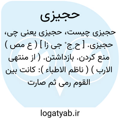حجیزی. [ ح ِج ْ جی زا ] ( ع مص ) منع کردن. بازداشتن. ( از منتهی الارب ) ( ناظم الاطباء ): کانت بین القوم رمی ثم صارت حجیزی؛ ای تراموا ثم تحاجزوا. ( منتهی الارب ).