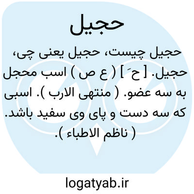 حجیل. [ ح َ ] ( ع ص ) اسب محجل به سه عضو. ( منتهی الارب ). اسبی که سه دست و پای وی سفید باشد. ( ناظم الاطباء ).