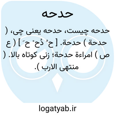 ( حدحة ) حدحة. [ ح ُ دُح ْ ح َ ] ( ع ص ) امراءة حدحة؛ زنی کوتاه بالا. ( منتهی الارب ).