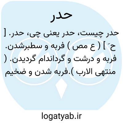 حدر. [ ح َ ] ( ع مص ) فربه و سطبرشدن. فربه و درشت و گرداندام گردیدن. ( منتهی الارب ).فربه شدن و ضخیم شدن. ( تاج المصادر بیهقی ). حدارت. || پرگوشت شدن چشمخانه. ( منتهی الارب ). || گرداندامی با سطبری. ( منتهی الارب ). || از بالا به زیر افکندن. ( تاج المصادر بیهقی ) ( زوزنی ). از بالا به زیر آوردن. حدور. ( آنندراج ). || حدر سفینة؛ فرستادن کشتی را بسوی شیب. ( منتهی الارب ). کشتی به شیب فروگذاشتن. ( تاج المصادر بیهقی ). || بشتاب بانگ نماز کردن. ( تاج المصادر بیهقی ). بشتاب خواندن. ( زوزنی ). || درآماهیدن. ( تاج المصادر بیهقی ). آماسیدن. ( مهذب الاسماء ). برآماهیدن. ( زوزنی ). آماس کردن پوست. آماس شدن پوست از زدن چوب. ( آنندراج ). || بافتن ریشه دستار و ردا. || راندن دارو شکم را. || گرد گرفتن چیزی را. || انداختن تنگ سال کسی را به فرودستی: حدرتهم السنة. ( آنندراج ). حدر. [ ح َ دَ ] ( ع مص ) حدر عین؛ روان کردن اشک چشم را. ( منتهی الارب ). جاری شدن اشک از چشم. || یکی را دو دیدن. حدر. [ ح َ دَ ] ( ع اِ ) زمین نشیب یا جائی که از آن فرودروند. ( منتهی الارب ). جائی که از آن جا فرودآیند. حدر. [ ح ُ دُرر ] ( ع ص ) سطبر. ( منتهی الارب ). حدر. [ ح َ ] ( ع اِ ) نزد قراء، از مراتب اصول و قواعد علم تجوید است. ( کشاف اصطلاحات الفنون ). حدر. [ ح ُدْ دَ ] ( ع ص، اِ ) ج ِ حادر. ( معجم البلدان ). حدر. [ ح ُدْ دَ ] ( اِخ ) از محال بصره پهلوی خطه مزینة. ( معجم البلدان ).