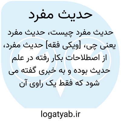 [ویکی فقه] حدیث مفرد، از اصطلاحات بکار رفته در علم حدیث بوده و به خبری گفته می شود که فقط یک راوی آن را نقل کند.