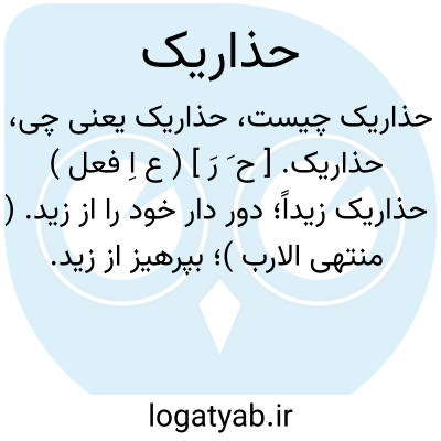 حذاریک. [ ح َ رَ ] ( ع اِ فعل ) حذاریک زیداً؛ دور دار خود را از زید. ( منتهی الارب )؛ بپرهیز از زید. حذر کن از زید.