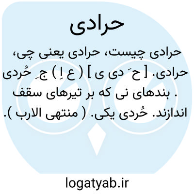 حرادی. [ ح َ دی ی ] ( ع اِ ) ج ِ حُردی. بندهای نی که بر تیرهای سقف اندازند. حُردی یکی. ( منتهی الارب ).