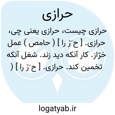 حرازی. [ ح َرْ را ] ( حامص ) عمل حَرّاز. کار آنکه دید زند. شغل آنکه تخمین کند.