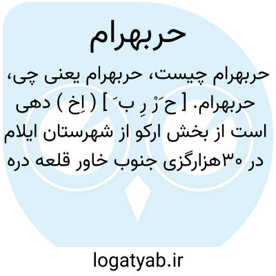 حربهرام. [ ح َرْ رِ ب َ ] ( اِخ ) دهی است از بخش ارکو از شهرستان ایلام در 30هزارگزی جنوب خاور قلعه دره، کنار راه مالرو رزین آباد. کوهستانی است و هوای معتدل دارد. دارای 400 تن سکنه است. آب آن از چشمه و محصول آن غلات و لبنیات است. مردم چادرنشین هستند. ( از فرهنگ جغرافیائی ایران ج 5 ).