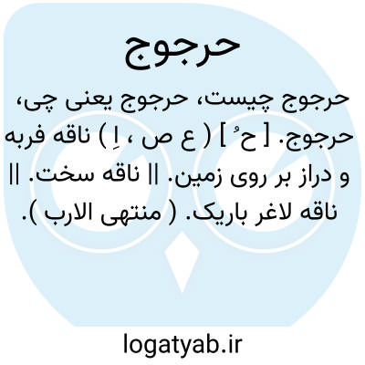 حرجوج. [ ح ُ ] ( ع ص، اِ ) ناقه فربه و دراز بر روی زمین. || ناقه سخت. || ناقه لاغر باریک. ( منتهی الارب ). حُرْج. حُرْجُج. اشتر باریک میان. ( مهذب الاسماء ). ج، حراجیج.