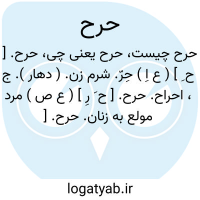 حرح. [ ح ِ ] ( ع اِ ) حِرّ. شرم زن. ( دهار ). ج، احراح.
