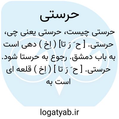 حرستی. [ ح َ رَ ] ( ص نسبی )منسوب به حرستا چنانکه در هدیة العارفین آمده است. و در معجم البلدان این نسبت را حرستانی نوشته است.