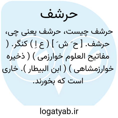 حرشف. [ ح َ ش َ ] ( ع اِ ) کنگر. ( مفاتیح العلوم خوارزمی ) ( ذخیره خوارزمشاهی ) ( ابن البیطار ). خاری است که بخورند. ج، حَراشِف. ( مهذب الاسماء ). نوعی رستنی باشد که با ماست خورند. جناح البیش. و در بعض لغت نامه ها، قسمی از کنگر. عکرش. تاقا. و ابن البیطار گوید: حرشف بر دو گونه است: نوعی از آن کنگر است و آن را قناریة نیز نامند و آن اهلی و بستانی است و نوع دیگر وحشی و بَرّی است و آنرا خزان خوانند و از این نوع وحشی قسمی است که به یونانی آنرا سقلومس گویند و غرب اسپانیا تصیف نامند. اسم نبطی و به عربی میثر نامند و به فارسی کنگر است. بستانی او را برگی است بزرگتر از برگ کاهو، و با رطوبت چسبنده و املس و مایل به سیاهی، و ساقش بقدر انگشتی و طول او تا دو ذرع، و در سر او چیزی شبیه به سپسی مجتمع از اجزاءزردرنگ، و بیخش مایل به سرخی و بالزوجت، و تخمش طولانی و از جو بزرگتر. در دوم گرم و در اول خشک، و گویند در اول تر است و با رطوبت فضلیه، و مبهی و مُدِرّ بول و حابس طبع و مسخن گرده و مثانه و محرک جماع و محلل ریاح و هاضم غذا و جهت قرحه شش و انقباض اطراف عضل و جراحت امعا و ضماد او جهت داءالثعلب و خوشبو کردن عرق، و موم روغنی را که با سه مثل او آب کنگر ممزوج کرده باشند جهت تحلیل اورام صلبه سریعالاثر و جهت برش نافع. و نطول او جهت خارش بدن و ضماد بیخ او جهت سوختگی آتش و التواء عصب مفید، و مضر دماغ و مولد سودا و نفاخ، و مصلحش ادویه حاره و روغن و سرکه است. و قسم بری را که مراد از مطلق حرشف او است، برگی سیاه تر و کوچکتر میباشد، و ساقش پربرگ و خارش تند و در سرش چیزی بقدر انار و خاردار و بیخش سیاه و غلیظ است. در آخر دوم گرم و در اول آن خشک، و در جمیع خواص قوی تر از بستانی است، و مصلح مواد متعفنه و مُخرِج مواد غلیظه سینه است و مضر محرورین و مصلحش سرکه و ترشیها است. و طلاء اجزاء لطیفه گل او با سرکه جهت جرب و نطول طبیخ جمیع اجزاء آن جهت خزاز و رفع قمل نافع است. و قسمی از بری که بی ساق و کوچک و پرخار است «خوبع» نامند، محلل و مقیی است. و صمغ حرشف را به فارسی کنگر زرد نامند. رجوع به تحفه حکیم و اختیارات بدیعی و تذکره ضریر انطاکی شود. || پشیزه ماهی. ( منتهی الارب ). فلس. || ریزه و خرد از مرغان و از شترمرغان و از هر چیزی. ( منتهی الارب ). || شکن زره. نورد زره. ( منتهی الارب ). || ضعفا و پیران و پیادگان و ناتوانان. || پشیزه کارد و شمشیر. ( منتهی الارب ). || میخها و جز آن که سلاح را بدان آرایش دهند.