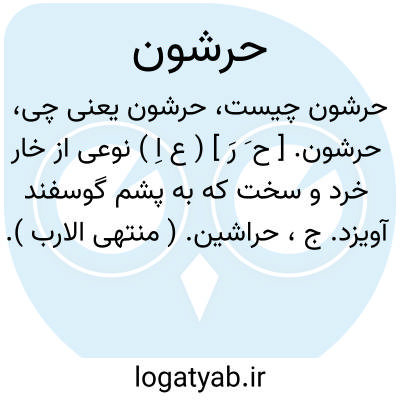 حرشون. [ ح َ رَ ] ( ع اِ ) نوعی از خار خرد و سخت که به پشم گوسفند آویزد. ج، حراشین. ( منتهی الارب ).