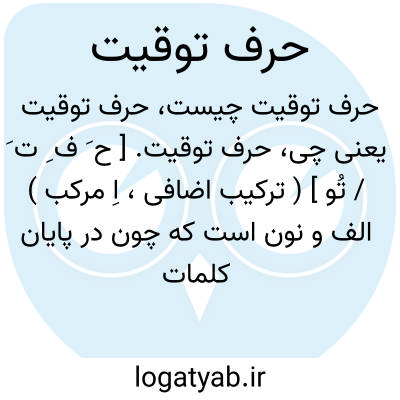 حرف توقیت. [ ح َ ف ِ ت َ / تُو ] ( ترکیب اضافی، اِ مرکب ) الف و نون است که چون در پایان کلمات زمان و مکان درآید معنی توقیت دهد. شمس قیس گوید: در اواخر اوقات و ازمنه معنی توقیت دهد، چنانکه سحرگاهان و بامدادان و ناگاهان و بیگاهان. ( المعجم فی معاییر اشعارالعجم ص 175 ). رجوع به «ان » شود.