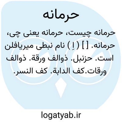 حرمانه. [ ] ( اِ ) نام نبطی میریافلن است. حزنبل. ذوالف ورقة. ذوالف ورقات.کف الدابة. کف النسر. مریافلن. هزاربرگ. کثیرالورق.