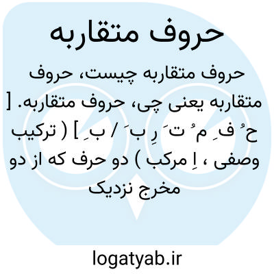 حروف متقاربه. [ ح ُ ف ِ م ُ ت َ رِ ب َ / ب ِ ] ( ترکیب وصفی، اِ مرکب ) دو حرف که از دو مخرج نزدیک بهم باشند، چون «د. س. ش. ض ». ( از کشاف اصطلاحات الفنون ).