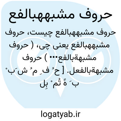 ( حروف مشبهةبالفع••• ) حروف مشبهةبالفعل. [ ح ُ ف ِ م ُ ش َب ْ ب َ هََ تُم ْ بِل ْ ف ِ ] ( ترکیب وصفی، اِ مرکب ) در دستور زبان عرب حرفهائی هستند که بر سر جمله مبتدا وخبر درآیند، پس مبتدا را منصوب سازد و اسم آن خوانده شود، و خبر را مرفوع سازد، و خبر آن خوانده شود و بهمین جهت آنها را شبیه به فعل خوانده اند. ابن مالک نحوی همه این حرفها را در یک شعر چنین سروده است: لان، أن، لیت، لکن، لعل، کأن َّ عکس ما لکان من عمل. و عمل این حرفها عکس عمل کان َ و اخوات آن میباشد.