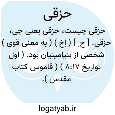 حزقی. [ ح ِ ] ( اِخ ) ( به معنی قوی ) شخصی از بنیامینیان بود. ( اول تواریخ 8:17 ) ( قاموس کتاب مقدس ).