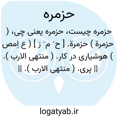( حزمرة ) حزمرة. [ ح َ م َ رَ ] ( ع اِمص ) هوشیاری در کار. ( منتهی الارب ). || پری. ( منتهی الارب ). || شکافته شدن شکوفه گندنا. ( منتهی الارب ) ( آنندراج ).