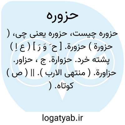 ( حزورة ) حزورة. [ ح َ وَ رَ ] ( ع اِ ) پشته خرد. حزوارة. ج، حزاور. حزاورة. ( منتهی الارب ). || ( ص ) کوتاه. ( مهذب الاسماء ).