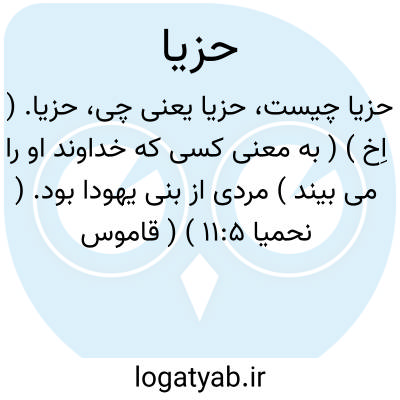 حزیا. ( اِخ ) ( به معنی کسی که خداوند او را می بیند ) مردی از بنی یهودا بود. ( نحمیا 11:5 ) ( قاموس کتاب مقدس ).