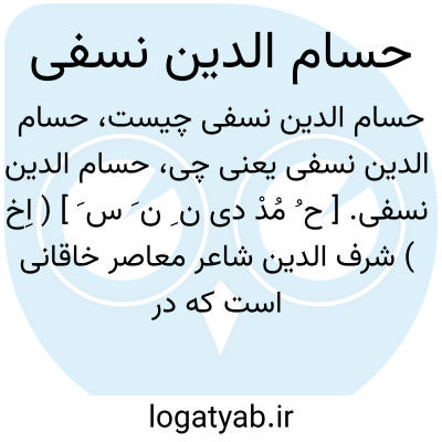 حسام الدین نسفی. [ ح ُ مُدْ دی ن ِ ن َ س َ ] ( اِخ ) شرف الدین شاعر معاصر خاقانی است که در ملاقات با خاقانی از شاعر بودن خود تبری میکند. رجوع به حسام نسفی شود.