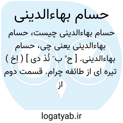 حسام بهاءالدینی. [ ح ُ ب َ ئُدْ دی ] ( اِخ ) تیره ای از طائفه چرام. قسمت دوم از اقسام چهار بنیچه ایل جاکی کوه کیلویه فارس. ( جغرافیای سیاسی کیهان ص 89 ).