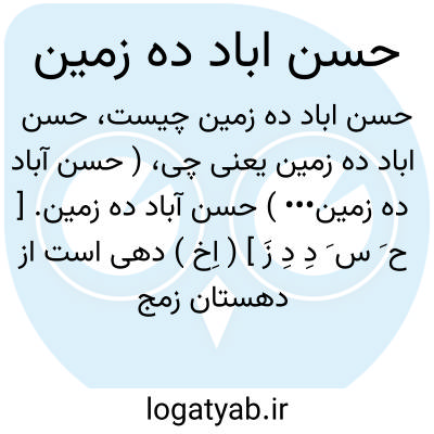 ( حسن آباد ده زمین••• ) حسن آباد ده زمین. [ ح َ س َ دِ دِ زَ ] ( اِخ ) دهی است از دهستان زمج بخش ششتمد شهرستان سبزوار در شش هزارگزی خاور ششتمد و نه هزارگزی خاور شوسه عمومی سبزوار به مشهد. دامنه و معتدل و سکنه آن 267 تن است. آب آن از قنات و رودخانه و محصول آن غلات، پنبه و شغل اهالی زراعت و باغداری است. ( از فرهنگ جغرافیائی ایران ج 9 ).