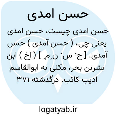 ( حسن آمدی ) حسن آمدی. [ ح َ س َ ن ِم ِ ] ( اِخ ) ابن بشربن بحر، مکنی به ابوالقاسم ادیب کاتب. درگذشته 371 هَ. ق. او راست: «تبیین غلط قدامة» در نقدالشعر و جز آن. ( هدیةالعارفین ج 1 ص 271 ).
