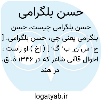 حسن بلگرامی. [ ح َ س َن ِ ب ُ گ َ ] ( اِخ ) او راست: احوال قاآنی شاعر که در 1346 هَ. ق. در هند چاپ شده است. ( ذریعه ج 7 ص 61 ).