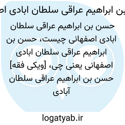 [ویکی فقه] حسن بن ابراهیم عراقی سلطان آبادی اصفهانی. حسن بن ابراهیم عراقی سلطان آبادی اصفهانی، عالم فاضل و فقیه مجتهد در اصفهان می باشد.