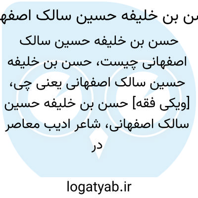 [ویکی فقه] حسن بن خلیفه حسین سالک اصفهانی، شاعر ادیب معاصر در اصفهان می باشد.