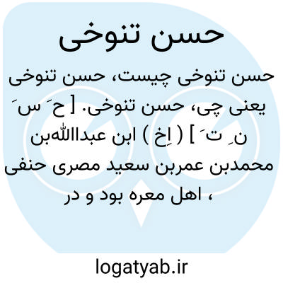 حسن تنوخی. [ ح َ س َ ن ِ ت َ ] ( اِخ ) ابن عبداﷲبن محمدبن عمربن سعید مصری حنفی، اهل معره بود و در بازگشت از حج در سال 419 هَ. ق. درگذشت. دیوان شعر دارد. ( هدیةالعارفین ج 1 ص 274 ) ( ذریعه ج 9 ص 187 ).