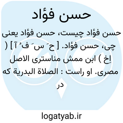حسن فؤاد. [ ح َ س َ ف ُ آ ] ( اِخ ) ابن ممش مناستری الاصل مصری. او راست: الصلاة البدریة که در ربیعالاَّخر 1273 هَ. ق. پایان یافته است. ( هدیة العارفین ج 1 ص 302 ).
