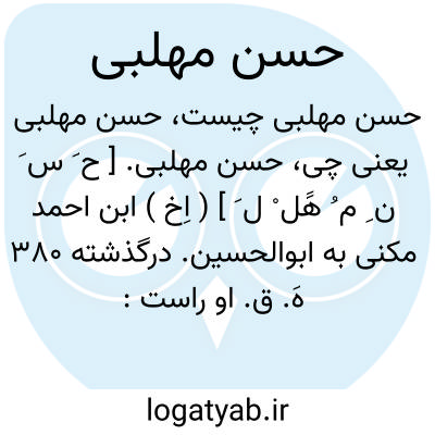 حسن مهلبی. [ ح َ س َ ن ِ م ُ هََل ْ ل َ ] ( اِخ ) ابن احمد مکنی به ابوالحسین. درگذشته 380 هَ. ق. او راست: «المسالک و الممالک » که برای معز فاطمی فرمانروای مصر تألیف کرده و آن را بنام او «عزیزی » نامیده است. ( هدیة العارفین ج 1 ص 273 ).