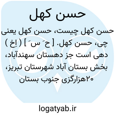 حسن کهل. [ ح َ س َ ] ( اِخ ) دهی است جز دهستان سهندآباد، بخش بستان آباد شهرستان تبریز، 20هزارگزی جنوب بستان آباد، 15هزارگزی شوسه بستان آباد به تبریز. جلگه سردسیر. سکنه آن 366 تن شیعه ترک زبان. آب آن از چشمه. محصول آنجا غلات. شغل اهالی زراعت و گله داری. راه مالرو دارد. ( از فرهنگ جغرافیایی ایران ج 4 ).