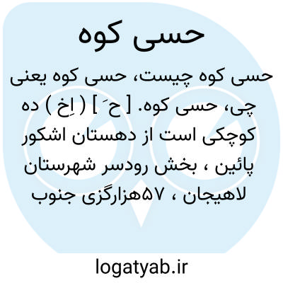 حسی کوه. [ ح َ ] ( اِخ ) ده کوچکی است از دهستان اشکور پائین، بخش رودسر شهرستان لاهیجان، 57هزارگزی جنوب رودسر، 6هزارگزی شوئیل. سکنه آن 30 تن. محصول عمده آن مختصر فندق و غلات دیمی است. ( از فرهنگ جغرافیایی ایران ج 2 ).