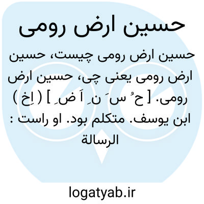 لغت نامه دهخدا حسین ارض رومی. [ ح ُ س َ ن ِ اَ ض ِ ] ( اِخ ) ابن یوسف. متکلم بود. او راست: الرسالة المنجیة که در 1154 هَ. ق. تألیف کرده و تا 1159 هَ. ق. 1746/ م. زنده بود. ( معجم المؤلفین از هدیة العارفین ج 1 ص 325 ).