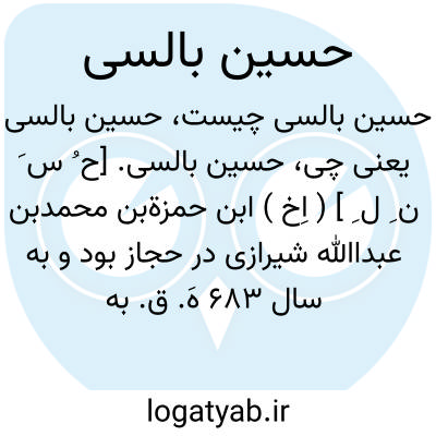 حسین بالسی. [ح ُ س َ ن ِ ل ِ ] ( اِخ ) ابن حمزةبن محمدبن عبداﷲ شیرازی در حجاز بود و به سال 683 هَ. ق. به دمشق شد. او راست: تحفةالروح و الانس. ( هدیة العارفین ج 1 ص 314 ).