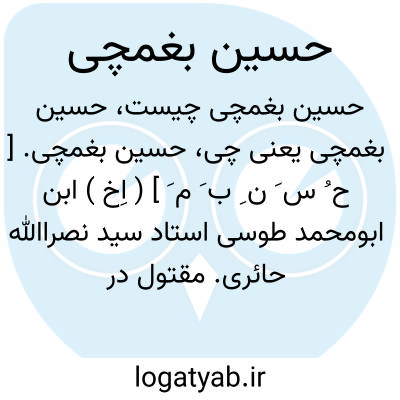 لغت نامه دهخدا حسین بغمچی. [ ح ُ س َ ن ِ ب َ م َ ] ( اِخ ) ابن ابومحمد طوسی استاد سید نصراﷲ حائری. مقتول در 1168 هَ. ق. بوده و به وی اجازت داده است. وی شاگرد مجلسی و محمدامین کاظمی و حرعاملی بوده است. ( ذریعه ج 1 ص 180 و ج 3 ص 301 ).