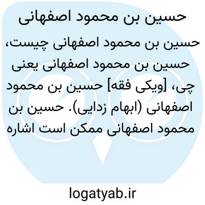 [ویکی فقه] حسین بن محمود اصفهانی (ابهام زدایی). حسین بن محمود اصفهانی ممکن است اشاره به اشخاص و شخصیت های ذیل باشد: • حسین بن محمود امامی نائینی اصفهانی، نویسنده و مورّخ معاصر در اصفهان• حسین بن محمود مبصرالسلطنه اصفهانی، از چهره های اهل ادب در اواخر دوره قاجاریه• سیدمحمدحسین بن سیدمحمود رجائی حسینی اصفهانی، عالم فاضل محقق در اصفهان• سیدمحمدحسین بن محمود آزاد خاتون آبادی اصفهانی، شاعر ادیب و خوشنویس دانشمند قرن چهاردهم هجری در اصفهان