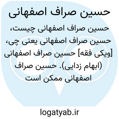 دانشنامه اسلامی [ویکی فقه] حسین صراف اصفهانی (ابهام زدایی). حسین صراف اصفهانی ممکن است اشاره به اشخاص و شخصیت های ذیل باشد: • حسین صراف ادیب اصفهانی، شاعر ادیب در اصفهان• میرزا حسین صراف اصفهانی، شاعر و از اهالی اصفهان...